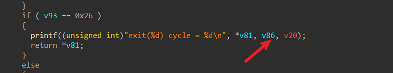 简单分析一下(对比源码)就可以发现v87就是cycle,那么简单patch一下exit的输出就可以了。