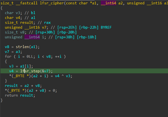 基本确定流密码。想的是改一下寄存器,自动解密。但是此处有个坑,我总是解密不完全。