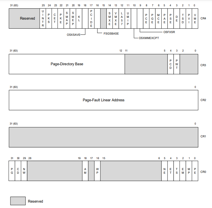 上文中提到的CR3寄存器,便是控制寄存器中的一个