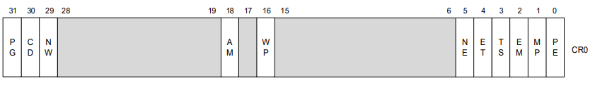 | PE (Protection Enable) | 当 PE = 1 时,处理器运行在保护模式下,可以使用内存保护等功能。当 PE = 0时,处理器运行在实模式下。 |