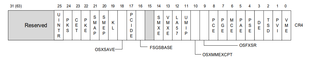- CET:是否启用控制流强制技术。必须在CR0开启WP的情况下才会启用也就是说开了CET,改写CR0.WP标志位会出问题。