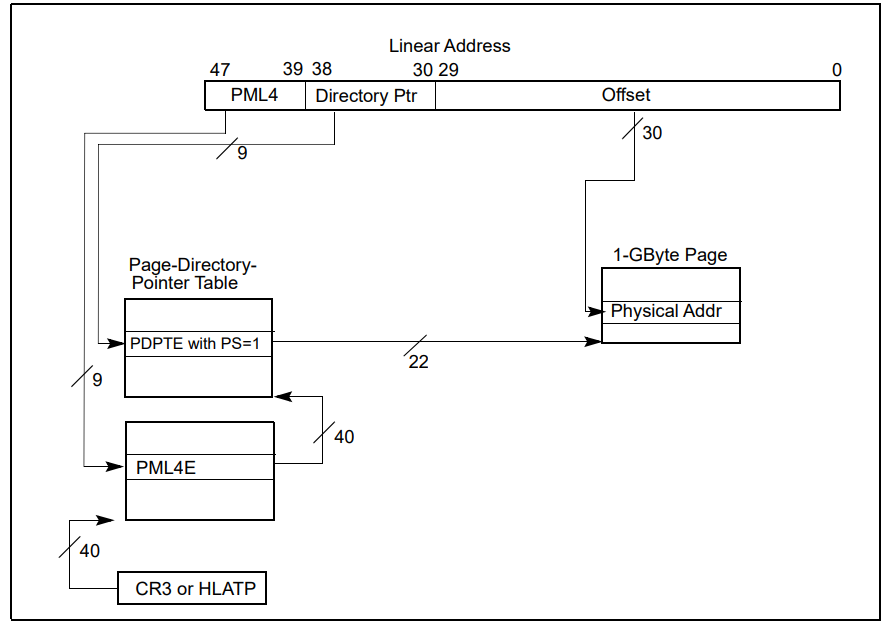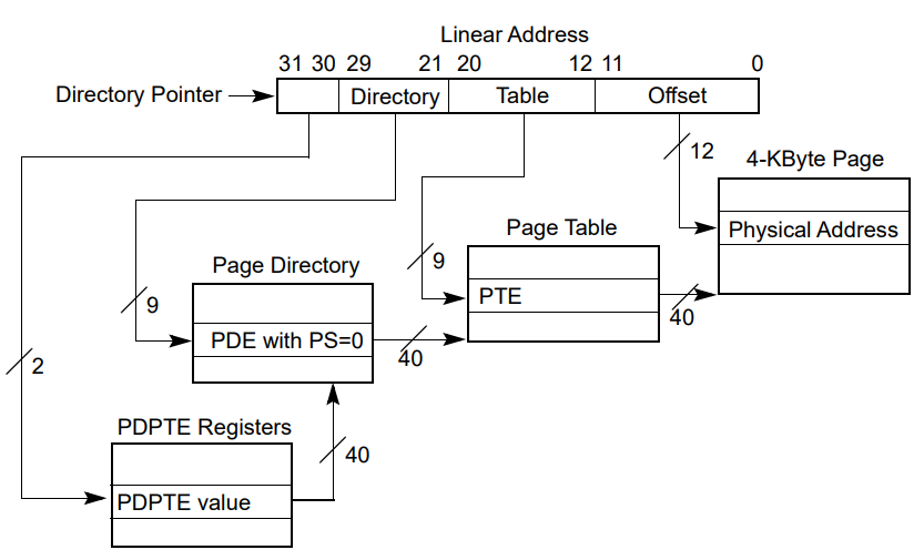 1 | PDPTE = Cr3().PDPTT[LinearAddress[30:31]] |