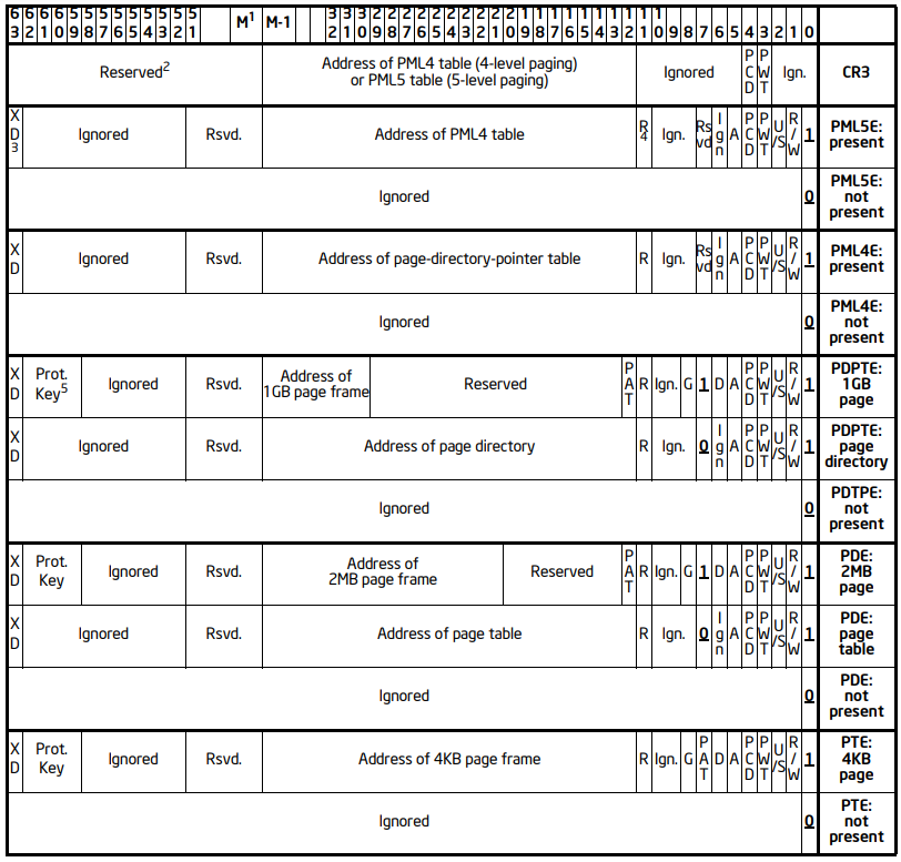 - LA57:IA-32e模式下是否开启5级页表(1时为5级,0时为4级)