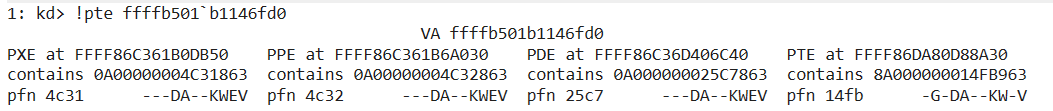 并且可以方便的看一下我们是否过程正确,我们使用!pte指令即可查看: