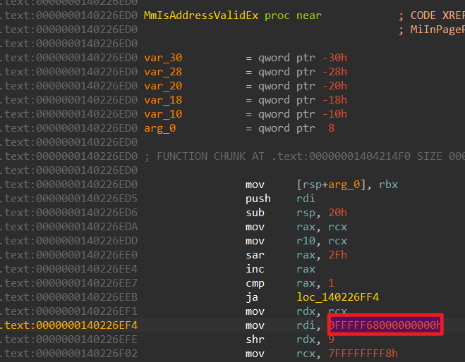 定位一个随机的页表基址是一个重要的问题在x64下,一般使用MmGetVirtualForPhysical、MmIsAddressValidEx、MmMapViewInSystemCache等使用了PTE基址的函数中的硬编码获取PTE基址。