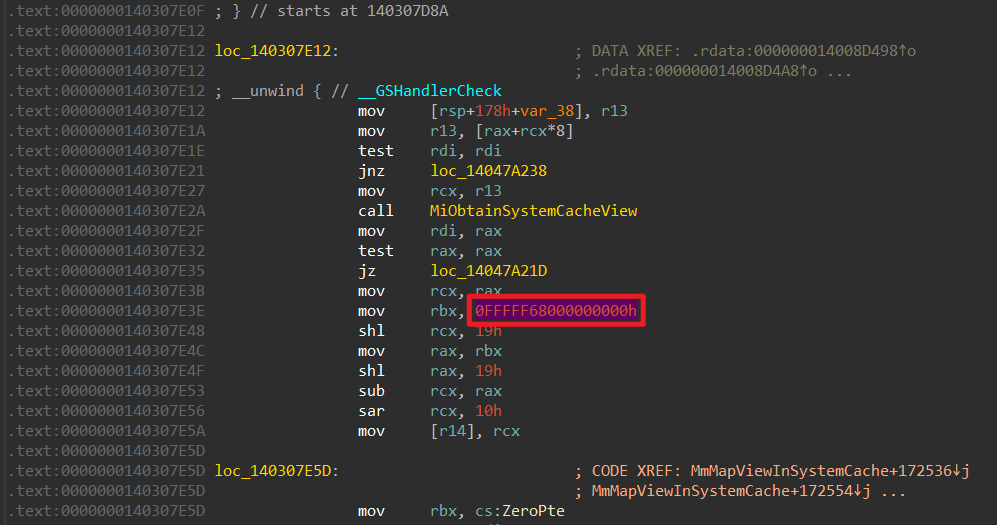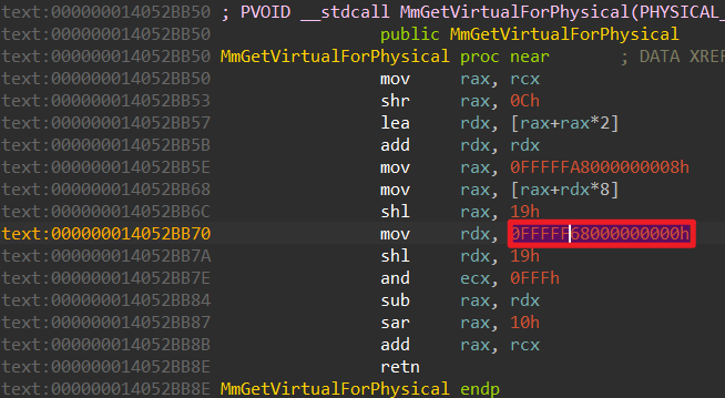 其中硬编码的PTE基址会随着系统启动而被修改,每次值不一定一样