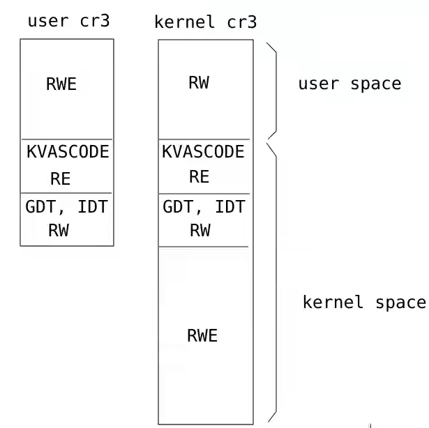 即内核页表隔离,表现为用户层有个CR3,内核层也有个CR3。