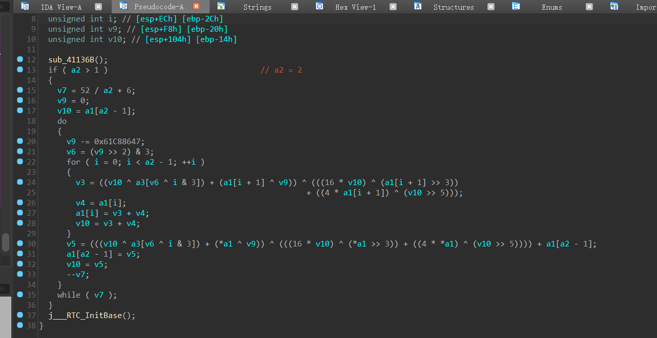 转回ida,我们分析read函数底下那些,点一点就能找到关键函数。