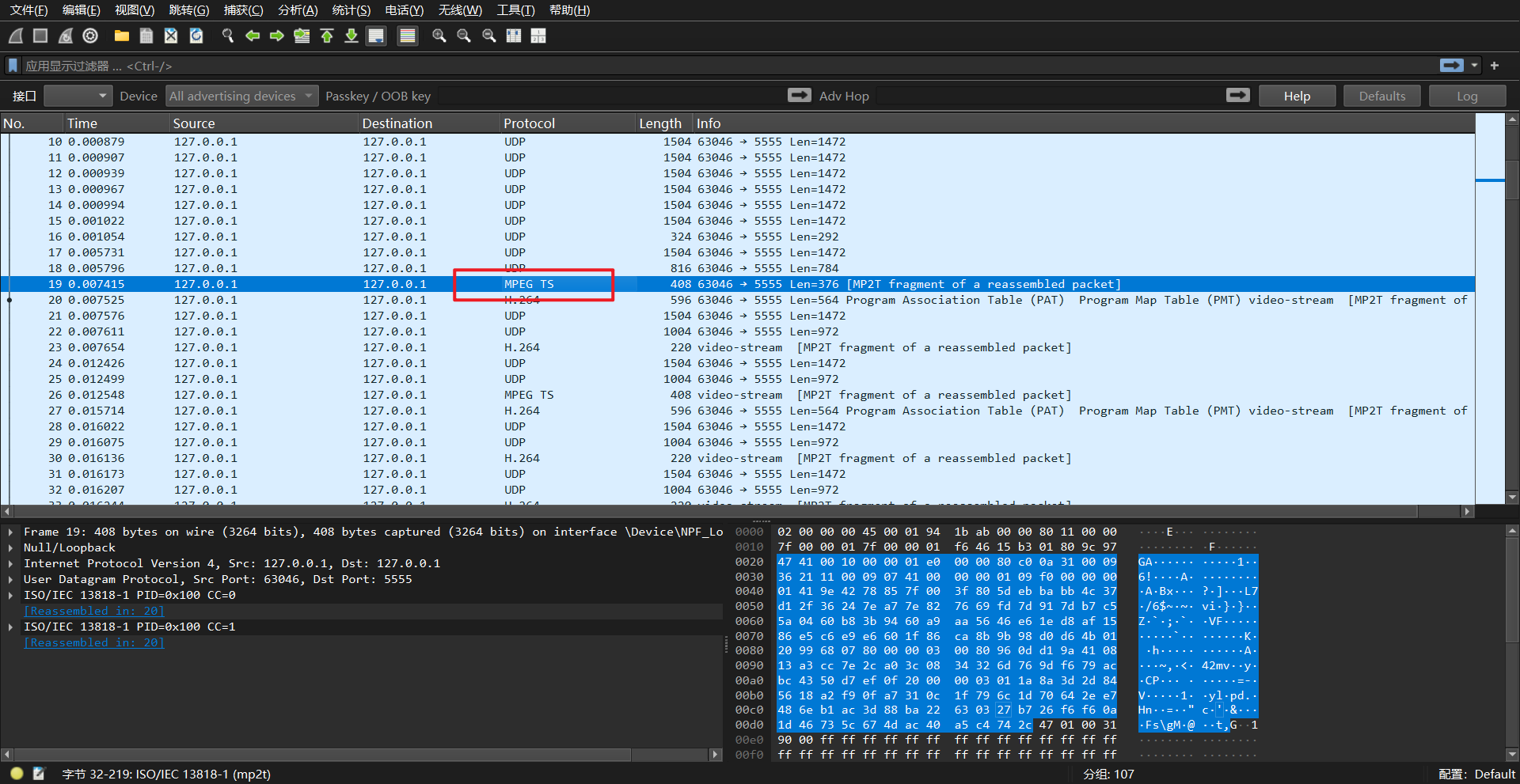 首先是对流量的处理,打开看到MPEG TS协议。