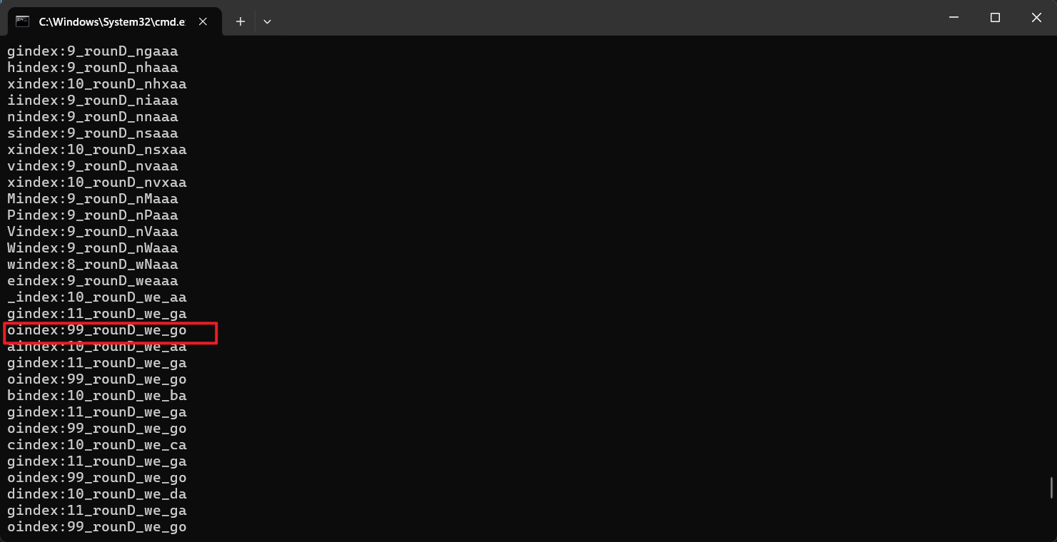 我们把他复制到另一个文件中来执行,我们一开始考虑的就是常规的单字节爆破,但是发现他这个并不是一一对应的,有可能在一个位子上的好几个字符都能对应他这个正确的值,所以我们需要修改爆破代码。