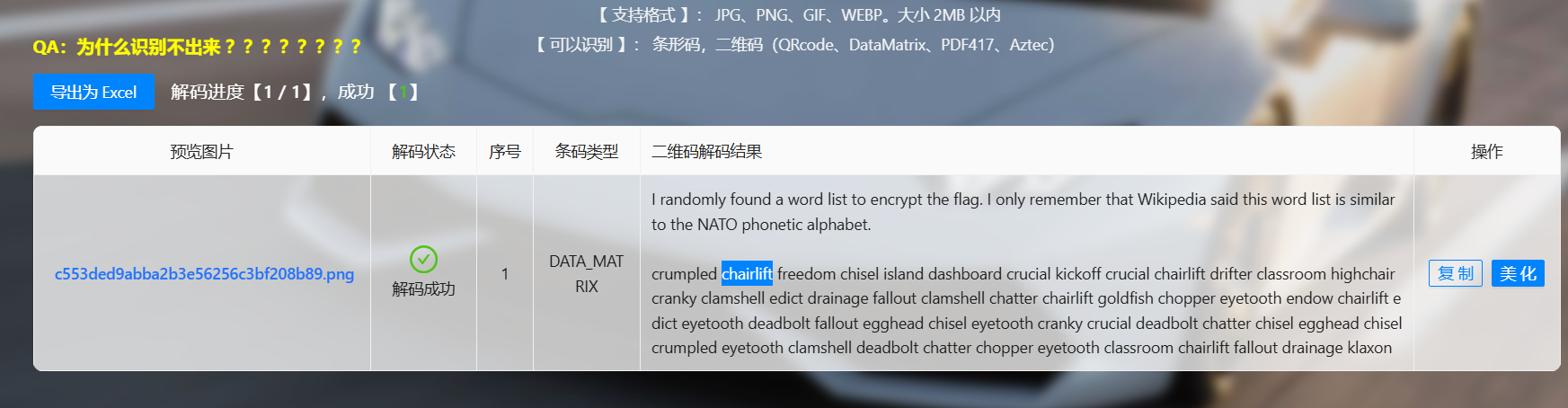 然后发现是个Data Matrix码,直接解码就行。