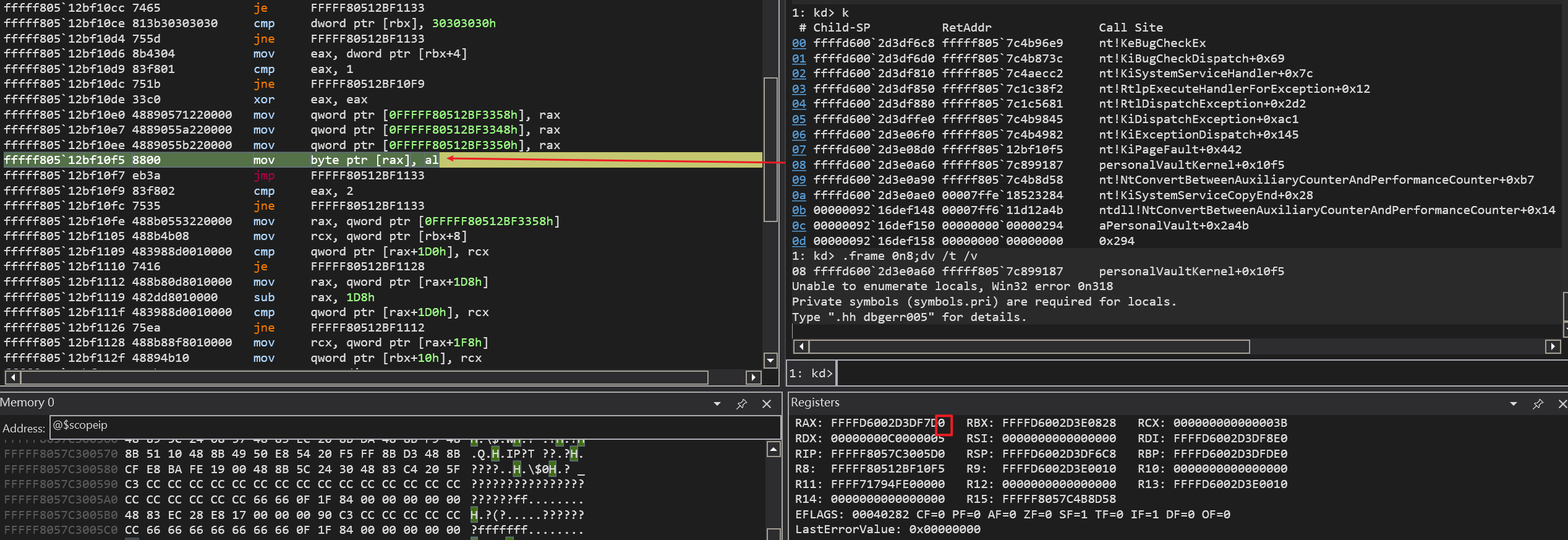 显然的他是故意触发蓝屏,解引用0指针。