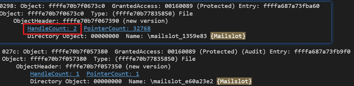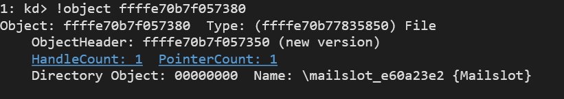Directory Object: 00000000 Name: \mailslot_e60a23e2 {Mailslot}