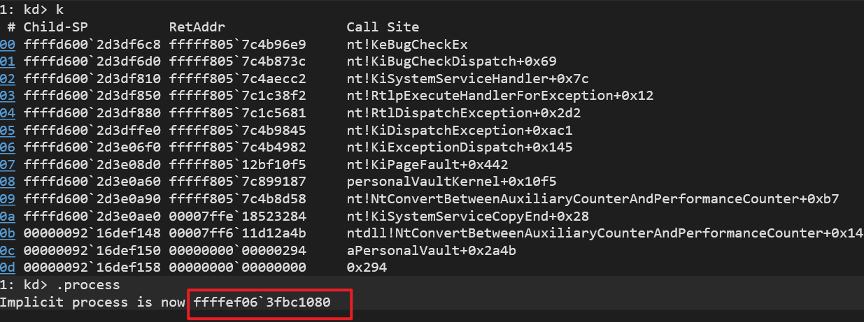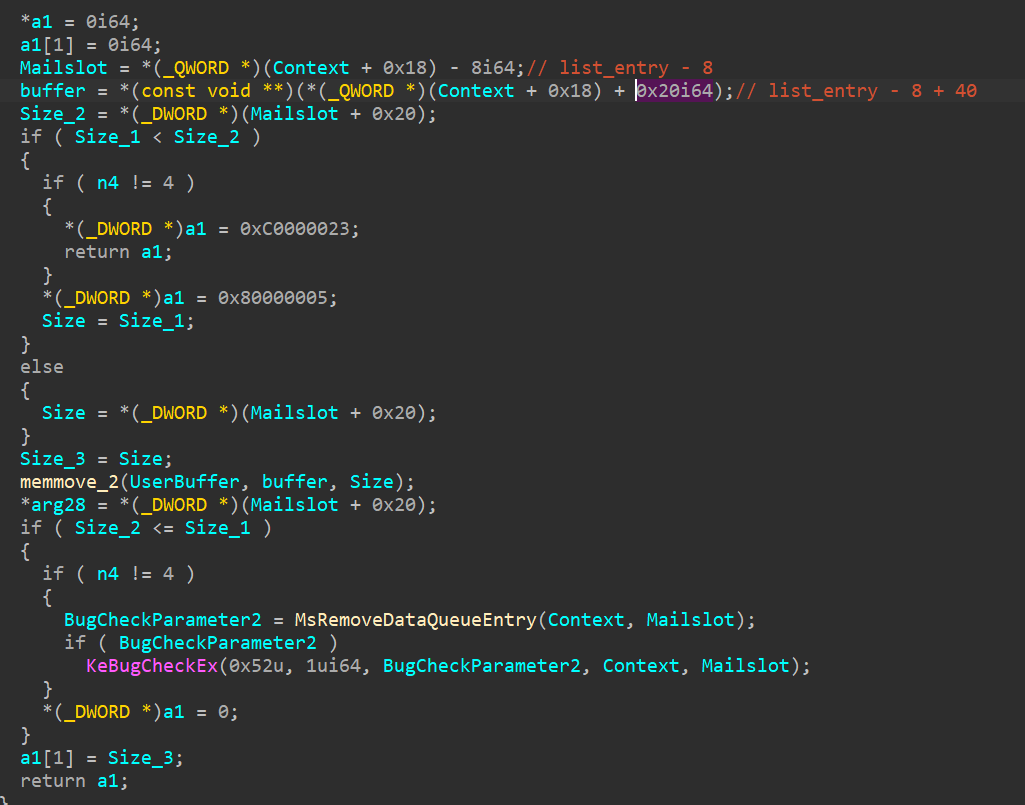 不难看出mailslot_1359e83被引用了2次,其表明是A、B进程都引用了他,进而A进程用自己的密钥,解密B进程密钥加密的数据,导致与自身不匹配引发的蓝屏