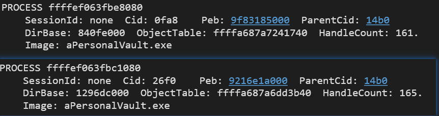 PROCESS ffffef063fbe8080 ->B CreateTime: 0x01dc3fe6ed454439