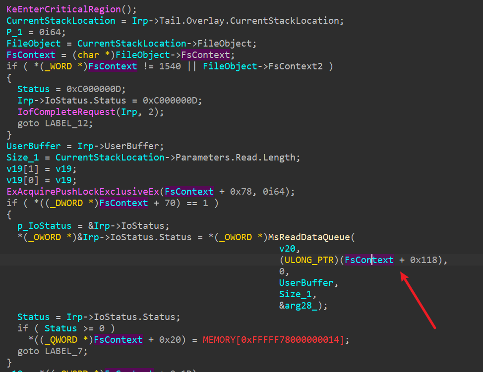 回归到具体数据上则是这样,0xffffe70b`7e814260是上文中的FsContext
