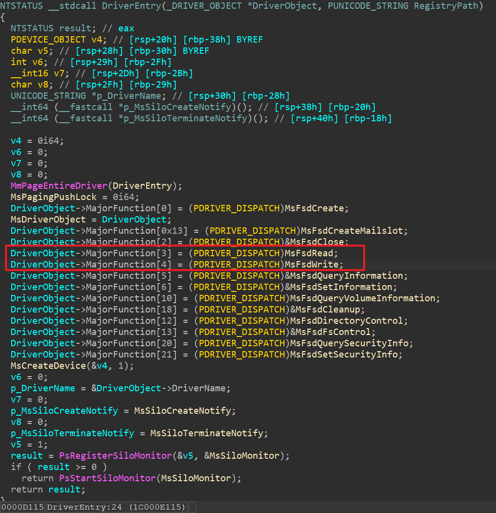既然邮件槽的对象归msfs驱动管理,我们需要关注其IRP处理函数,就可以知道读写邮件槽时如何对其操作了